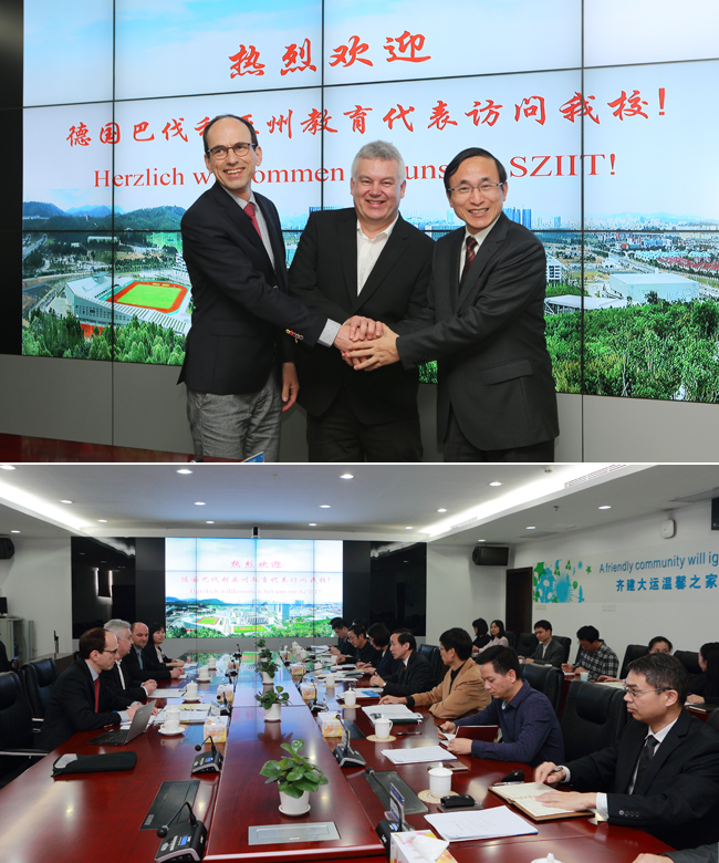 孙湧校长对德方代表的来访表示热烈欢迎。他希望通过此次会谈,我校中德学院合作项目能达成进一步共识,并期待借助德国在职业教育方面的先进经验,为我校以及深圳市的职业教育开拓新的发展局面;德国合作院校的校长们对各自学校的办学理念、培养定位以及校企合作的情况进行了介绍。中德双方通过交流讨论,对中德学院联合管理委员会章程达成初步共识,并就我方回访德国事宜进行初步确定。