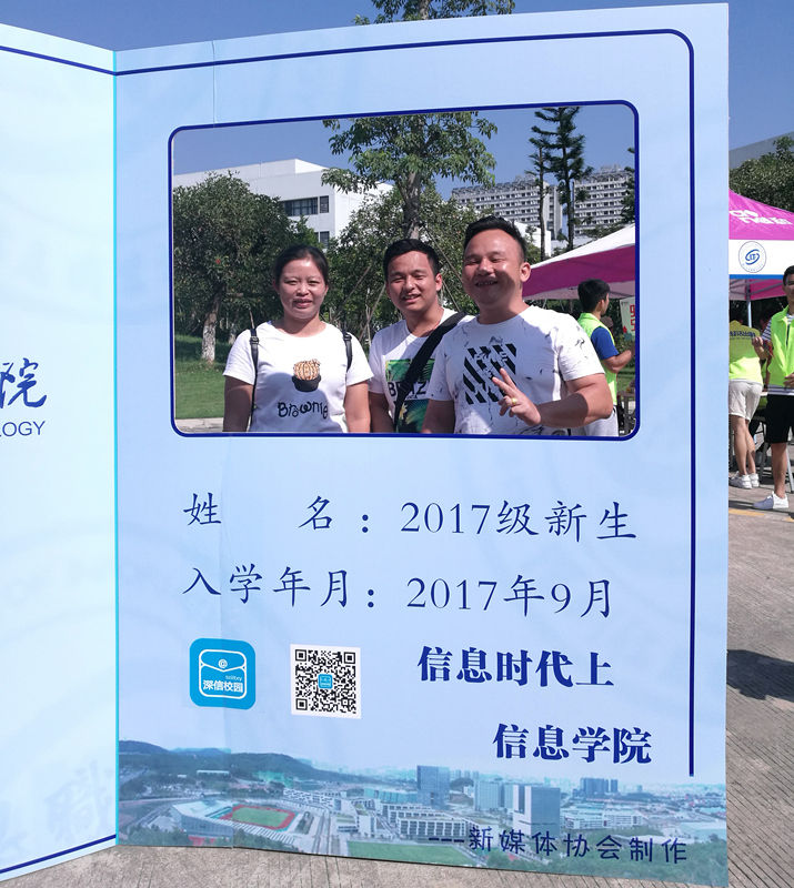 16日上午,记者在信息学院的大运村校园看到,迎新气氛热烈,秩序井然。新生报到处设在体育馆,不少新生在“深信第一天”留言台兴奋地写下对大学生活的祝福与期待。到现场看望新生和工作人员的孙湧校长也留言勉励同学们:“自信,执着,勇往直前。”