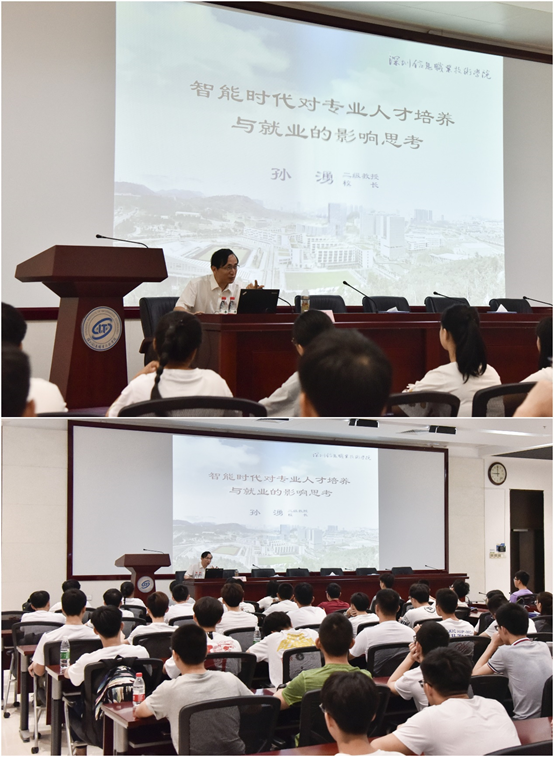 9月18日上午,孙湧校长在致远楼604报告厅为中德学院2019级全体新生讲授了别开生面的第一堂思政课——“智能时代对专业人才培养与就业的影响思考”。
