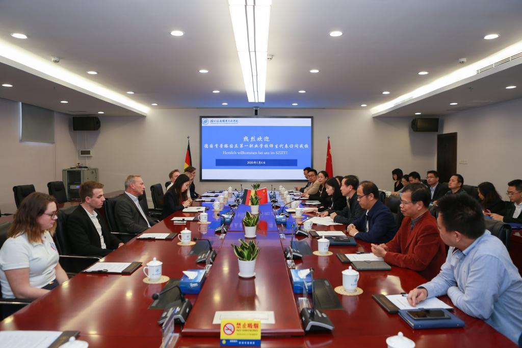 会议由许志良副校长主持,德方师生代表团一行首先观看了英文宣传片,全面了解我校整体情况。随后,孙湧校长致欢迎辞,他向德方概述了我校“特色鲜明、实力雄厚、成长性好、竞争力强”的办学优势,回顾了我校中德合作的过往历程以及与肯校的合作渊源,对德方本次到访表示热烈欢迎,并诚挚祝愿德方师生代表团成员在深圳度过愉快的时光。此次交换实训活动具有突破性的实践价值与重大意义,他期待双方多交流、多学习、互通有无,不断推进中德职业教育与合作蓬勃发展。