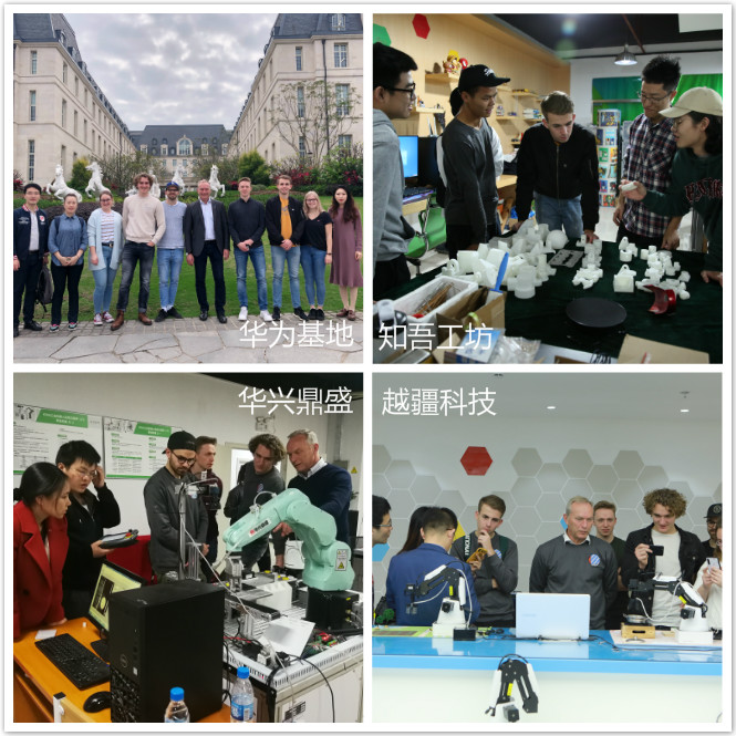 1月13日下午及14号上午,德方交换生分别参观了深圳市华兴鼎盛科技有限公司以及越疆科技有限公司,前者是我国职业教育平台和校企合作的佼佼者,后者是全国领先的轻型机械臂解决方案供应商。在华兴鼎盛,德国学生观摩学习了FANAC机器人工作站、ABB机器人工作站等。在越疆科技,德方师生观摩听取了项目总监李晓亮的产品及应用介绍。囊括自主垃圾分类、自动咖啡机、货物码垛的机械臂应用令德方学生目不转睛,机器人毛笔书法和人机对弈的趣味展示更令德方师生莞尔不已。最后,德方师生亲手设定制作并带回了穿山甲、霸王龙、蝴蝶等3D打印纪念品。